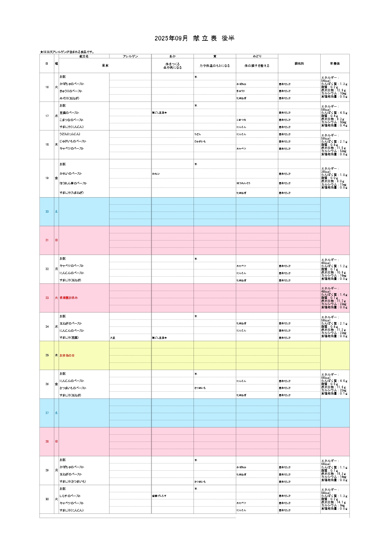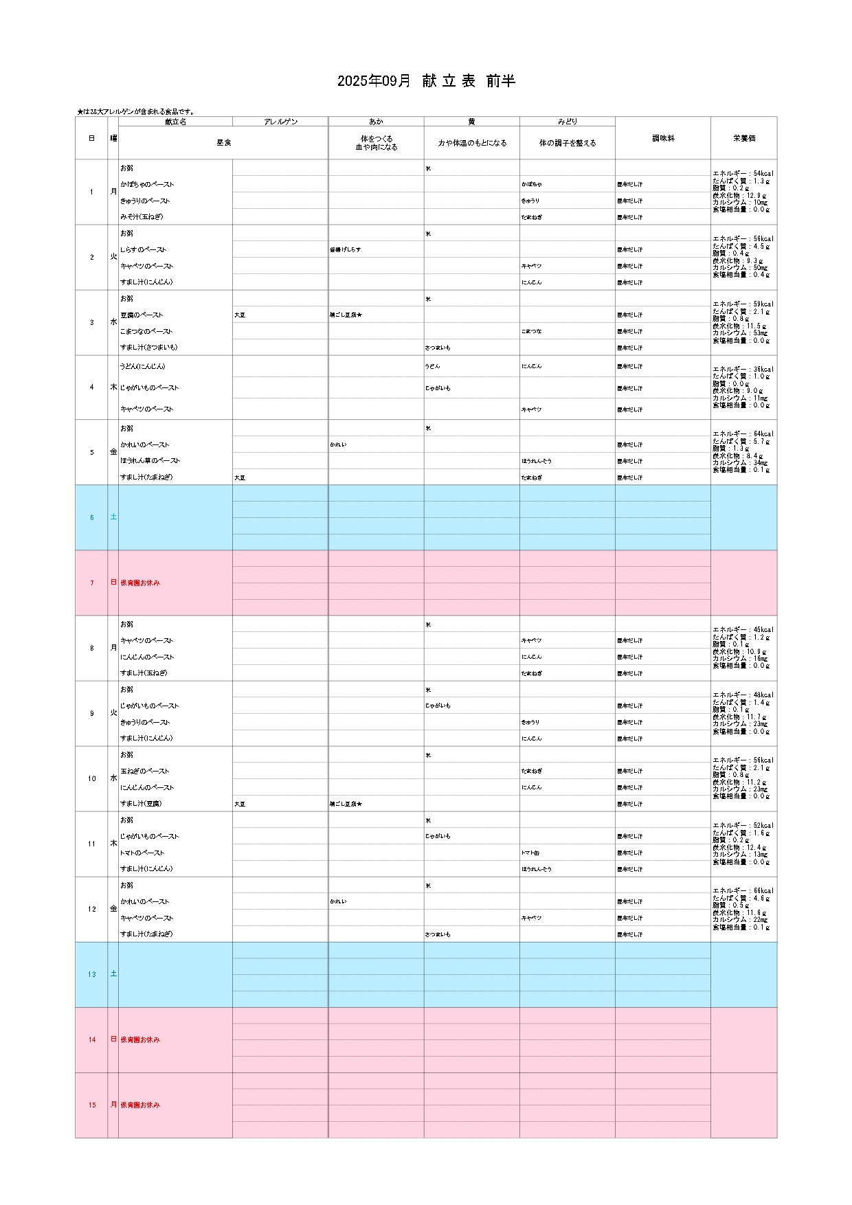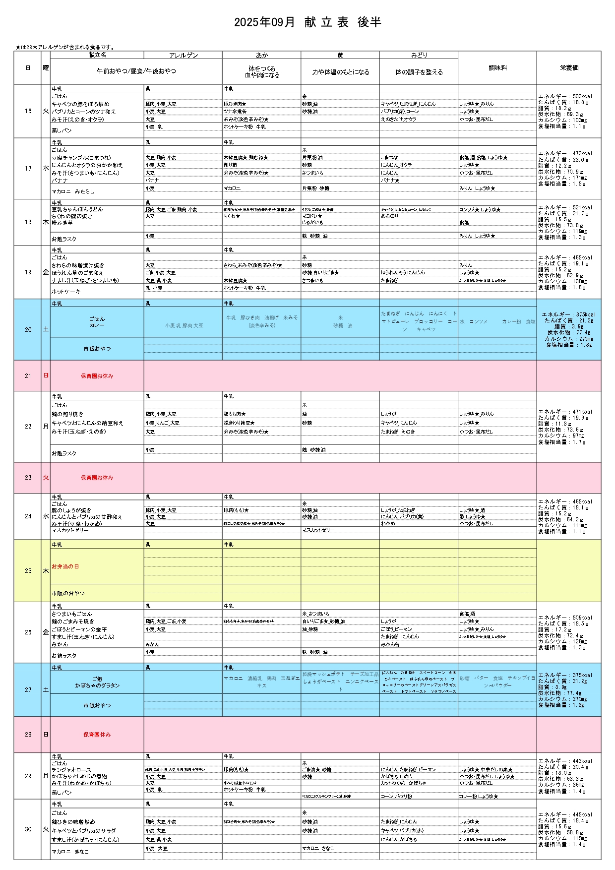 ※発注の関係でメニューが変更になる場合があります。ご了承の程よろしくお願いいたします。