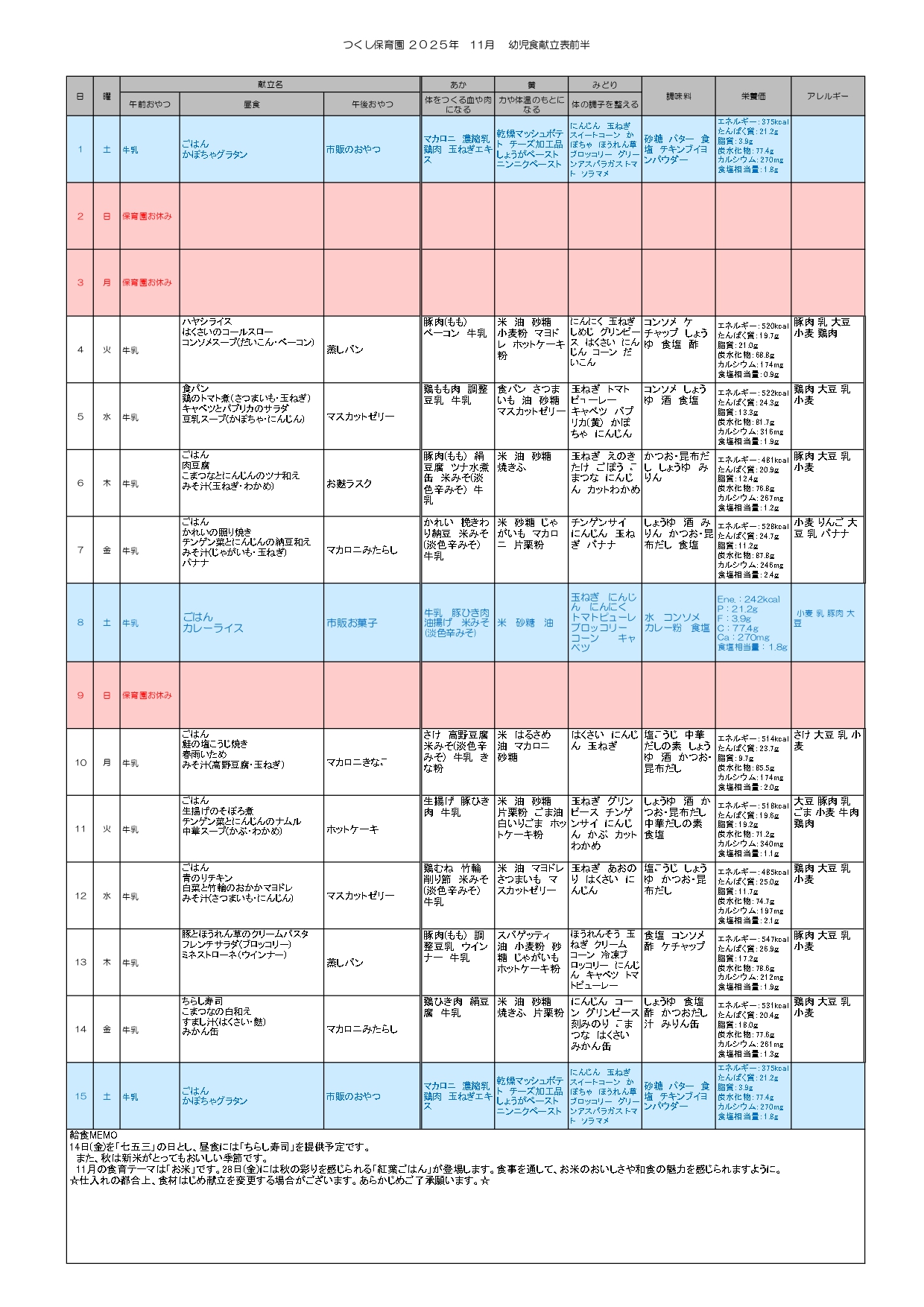 11月離乳食(中期:前半)