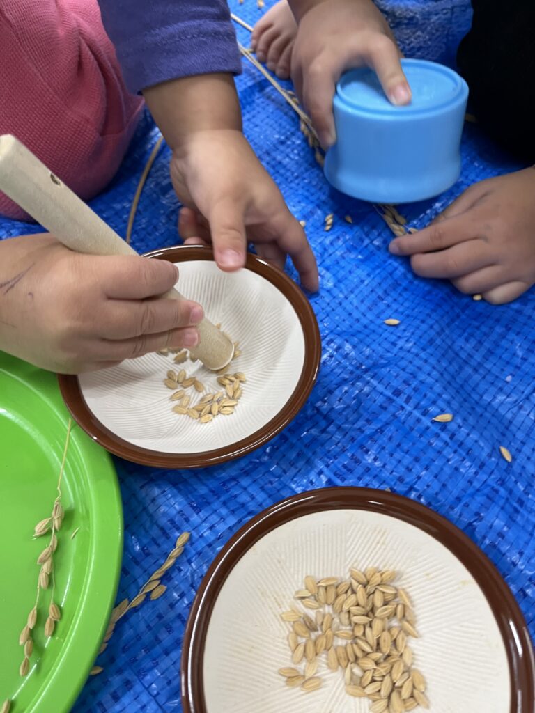 籾すり体験では、『ごりごりしたー!』『できたよ〜!』『ごはん〜!』とたくさん声が聞こえました☺️