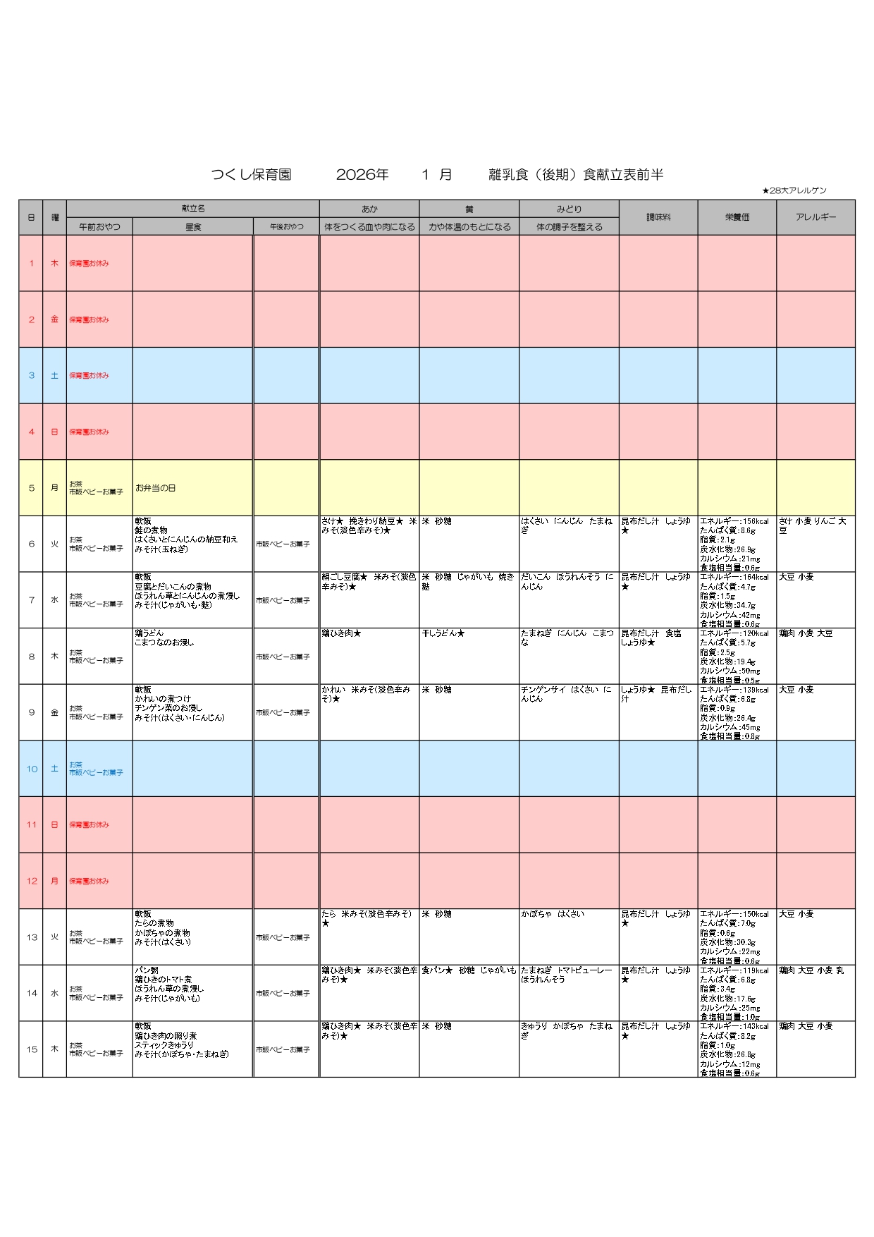 ※離乳食のおやつはハイハイン等、個別対応になります。