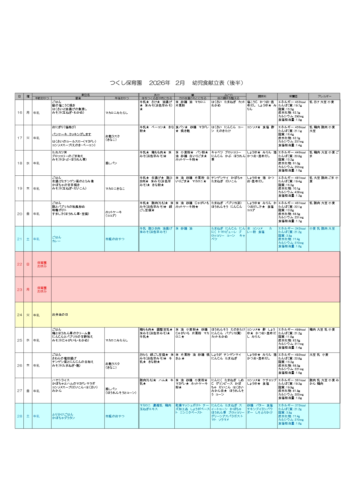 ※発注の関係でメニューが変更になる場合があります。ご了承の程よろしくお願いいたします。