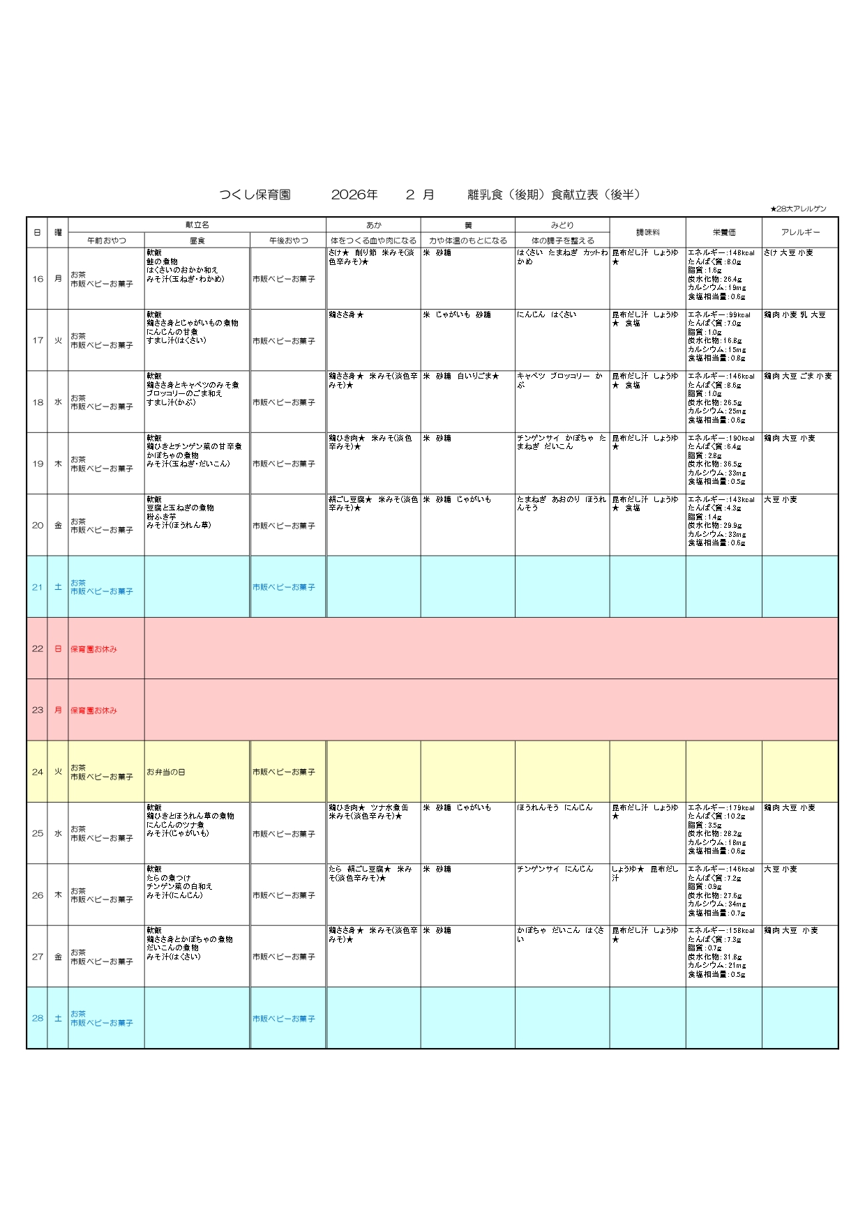※離乳食のおやつはハイハイン等、個別対応になります。